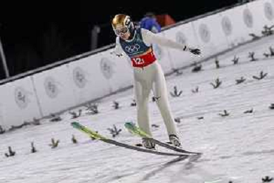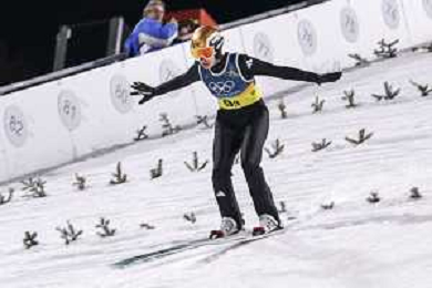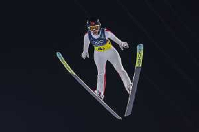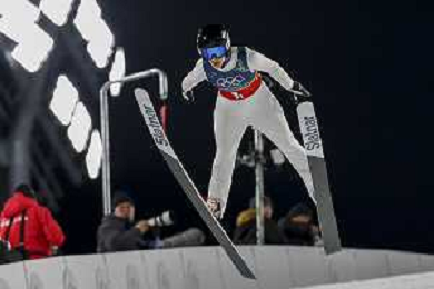 Qiwu SONG, CHN, bib nu 4-2, Action Photo, Mixed Team Normal Hill HS107 at Ski Jumping Olympic Winter Games 2025-26 in Milano Cortina, Italy, 2026-02-10, Photo Credit: action press / Julia Piatkowska AG KARMAPRESS-AG ALDO LIVERANI SAS