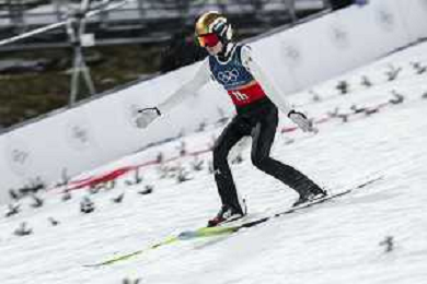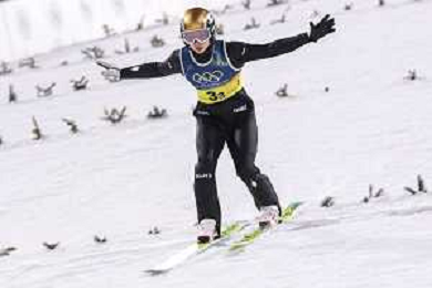Ping ZENG, CHN, bib nu 4-1, Action Photo, Mixed Team Normal Hill HS107 at Ski Jumping Olympic Winter Games 2025-26 in Milano Cortina, Italy, 2026-02-10, Photo Credit: action press / Julia Piatkowska AG KARMAPRESS-AG ALDO LIVERANI SAS