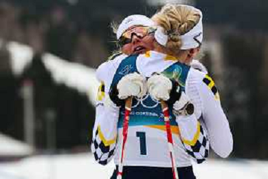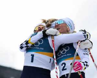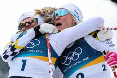Linn SVAHN, SWE, bib number 1, Maja DAHLQVIST, SWE, bib number 7, Winner Photo, Women's Sprint Final Classic at Cross-Country Olympic Winter Games 2025-26 in Milano Cortina, Italy, 2026-02-10, Photo Credit: action press / Julia Piatkowska AG KARMAPRESS-AG ALDO LIVERANI SAS