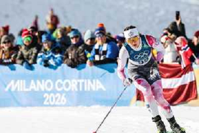 Kitija AUZINA, LAT, Bib number 56, Action Photo, Women's Sprint Qualification Classic at Cross-Country Olympic Winter Games 2025-26 in Milano Cortina, Italy, 2026-02-10, Photo Credit: action press / Julia Piatkowska AG KARMAPRESS-AG ALDO LIVERANI SAS