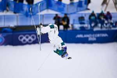 Cooper WOODS, AUS, bib number 19, Action Photo, Men's Moguls Qualification at Freestyle Olympic Winter Games 2025-26 in Milano-Cortina, Italy, 2026-02-10, Photo Credit: action press / Kenjiro Matsuo AG KARMAPRESS-AG ALDO LIVERANI SAS