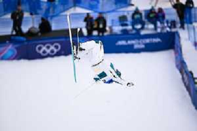 Pavel KOLMAKOV, KAZ, bib number 22, Action Photo, Men's Moguls Qualification at Freestyle Olympic Winter Games 2025-26 in Milano-Cortina, Italy, 2026-02-10, Photo Credit: action press / Kenjiro Matsuo AG KARMAPRESS-AG ALDO LIVERANI SAS