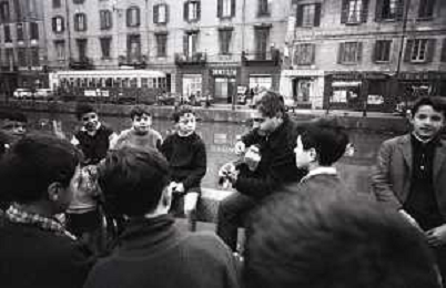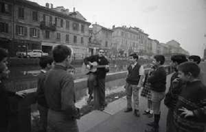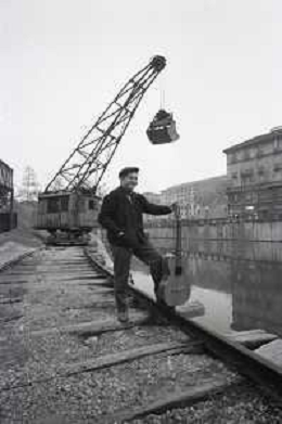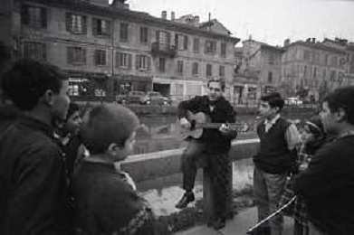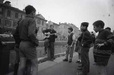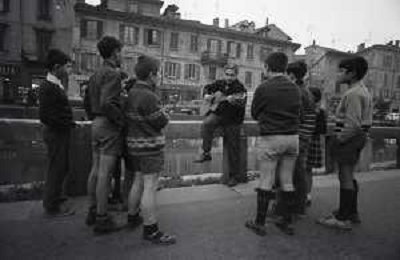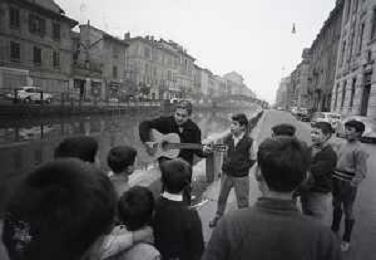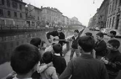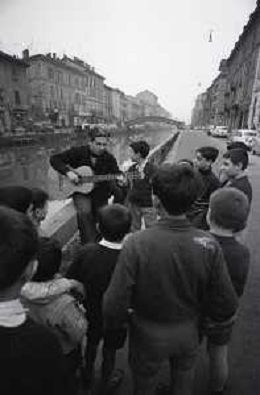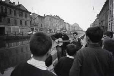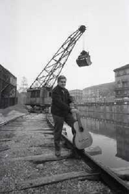 NEG-RETROSPETTIVA BRUNO LAUZI CANTANTE NELLA FOTO BRUNO LAUZI SUI NAVIGLI A MILANO NELL'ANNO 1965 AG ALDO LIVERANI SAS
