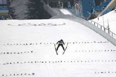 Jiawen ZHAO, CHN, Bib Number 8, Trial Round, Action Photo, Men's Individual Gundersen Normal Hill HS107/10,0 Km at Nordic Combined Olympic Winter Games 2025-26 in Milano Cortina, Italy, 2026-02-11, Photo Credit: action press / Julia Piatkowska / KarmaPress - AGENZIA ALDO LIVERANI SAS ITALY ONLY EDITORIAL USE ONLY