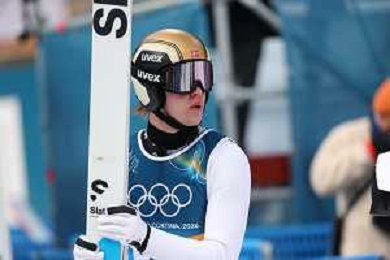 Julian SCHMID, GER, Bib Number 34, Run 1, Event Photo, Interview, Men's Individual Gundersen Normal Hill HS107/10,0 Km at Nordic Combined Olympic Winter Games 2025-26 in Milano Cortina, Italy, 2026-02-11, Photo Credit: action press / Julia Piatkowska / KarmaPress - AGENZIA ALDO LIVERANI SAS ITALY ONLY EDITORIAL USE ONLY