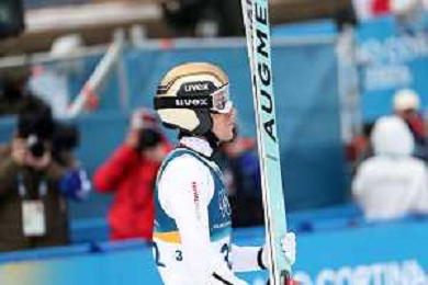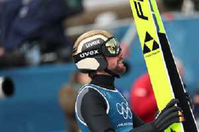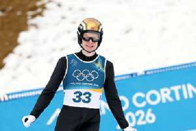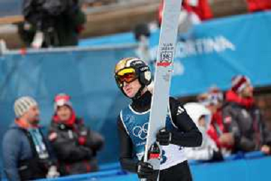 Vinzenz GEIGER, GER, Bib Number 28, Run 1, Action Photo, Men's Individual Gundersen Normal Hill HS107/10,0 Km at Nordic Combined Olympic Winter Games 2025-26 in Milano Cortina, Italy, 2026-02-11, Photo Credit: action press / Julia Piatkowska / KarmaPress - AGENZIA ALDO LIVERANI SAS ITALY ONLY EDITORIAL USE ONLY