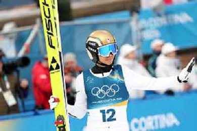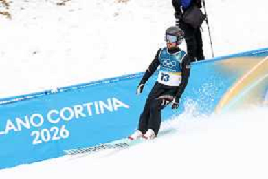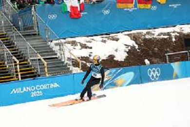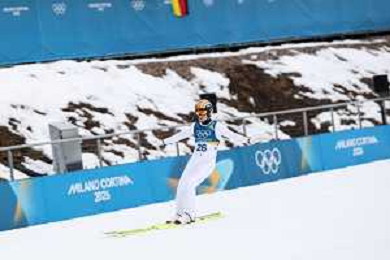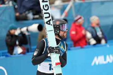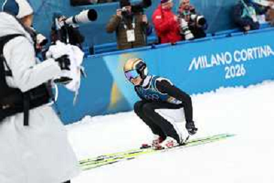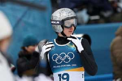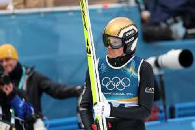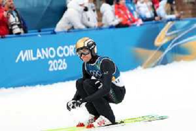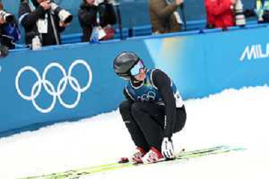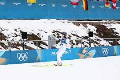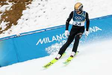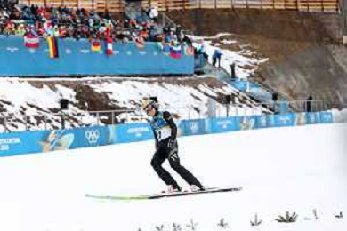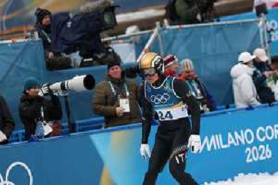 Samuel COSTA, ITA, Bib Number 24, Run 1, Action Photo, Men's Individual Gundersen Normal Hill HS107/10,0 Km at Nordic Combined Olympic Winter Games 2025-26 in Milano Cortina, Italy, 2026-02-11, Photo Credit: action press / Julia Piatkowska / KarmaPress - AGENZIA ALDO LIVERANI SAS ITALY ONLY EDITORIAL USE ONLY