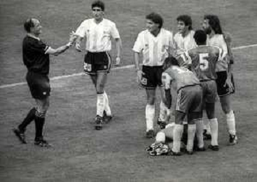 NEG-08-06-1990 MILANO-STADIO MEAZZA PARTITA DEI MONDIALI DI CALCIO ITALIA 90 ARGENTINA-CAMERUN 0-1 NELLA FOTO DIEGO MARADONA E L'ARBITRO MICHEL VAUTROT AG ALDO LIVERANI SAS