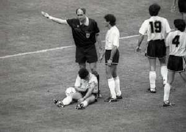 NEG-08-06-1990 MILANO-STADIO MEAZZA PARTITA DEI MONDIALI DI CALCIO ITALIA 90 ARGENTINA-CAMERUN 0-1 NELLA FOTOL'ARBITRO MICHEL VAUTROT AG ALDO LIVERANI SAS