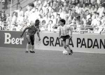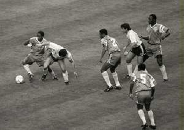 NEG-08-06-1990 MILANO-STADIO MEAZZA PARTITA DEI MONDIALI DI CALCIO ITALIA 90 ARGENTINA-CAMERUN 0-1 NELLA FOTO THOMAS N'KONO AG ALDO LIVERANI SAS