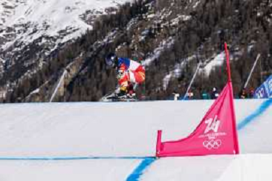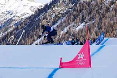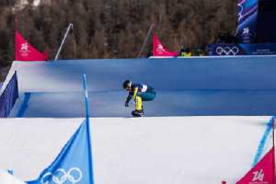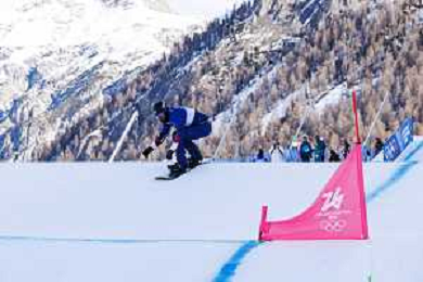Liam MOFFATT, CAN, Bib Number 24, Qualification, Action Photo, Men's Snowboard Cross Qualification at Snowboard Olympic Winter Games 2025-26 in Milano-Cortina, Italy, 2026-02-12, Photo Credit: Frank Heinen / Karma Press - AGENZIA ALDO LIVERANI SAS - ITALY ONLY EDITORIAL USE ONLY