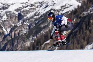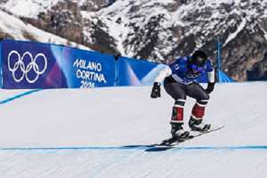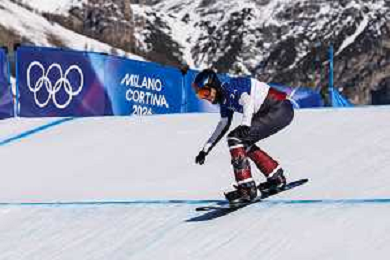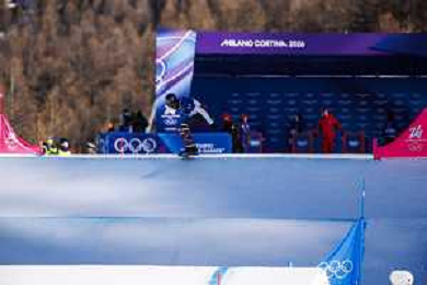 Nick BAUMGARTNER, USA, Bib Number 1, Qualification, Action Photo, Men's Snowboard Cross Qualification at Snowboard Olympic Winter Games 2025-26 in Milano-Cortina, Italy, 2026-02-12, Photo Credit: Frank Heinen / Karma Press - AGENZIA ALDO LIVERANI SAS - ITALY ONLY EDITORIAL USE ONLY