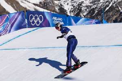 Krystof CHOURA, CZE, Bib Number 22, Qualification, Action Photo, Men's Snowboard Cross Qualification at Snowboard Olympic Winter Games 2025-26 in Milano-Cortina, Italy, 2026-02-12, Photo Credit: Frank Heinen / Karma Press - AGENZIA ALDO LIVERANI SAS - ITALY ONLY EDITORIAL USE ONLY
