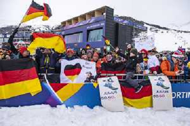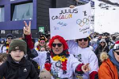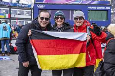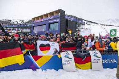 Fans, GER, Qualification, Event Photo, Men's Snowboard Cross Qualification at Snowboard Olympic Winter Games 2025-26 in Milano-Cortina, Italy, 2026-02-12, Photo Credit: Frank Heinen / Karma Press - AGENZIA ALDO LIVERANI SAS - ITALY ONLY EDITORIAL USE ONLY