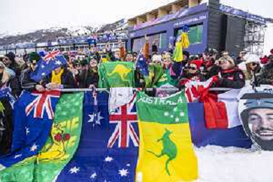 Fans, AUS, Qualification, Event Photo, Men's Snowboard Cross Qualification at Snowboard Olympic Winter Games 2025-26 in Milano-Cortina, Italy, 2026-02-12, Photo Credit: Frank Heinen / Karma Press - AGENZIA ALDO LIVERANI SAS - ITALY ONLY EDITORIAL USE ONLY