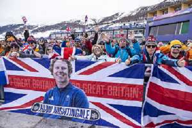 Fans, GBR, Qualification, Event Photo, Men's Snowboard Cross Qualification at Snowboard Olympic Winter Games 2025-26 in Milano-Cortina, Italy, 2026-02-12, Photo Credit: Frank Heinen / Karma Press - AGENZIA ALDO LIVERANI SAS - ITALY ONLY EDITORIAL USE ONLY