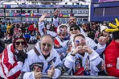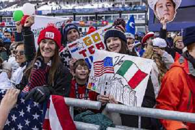 Fans, USA, Qualification, Event Photo, Men's Snowboard Cross Qualification at Snowboard Olympic Winter Games 2025-26 in Milano-Cortina, Italy, 2026-02-12, Photo Credit: Frank Heinen / Karma Press - AGENZIA ALDO LIVERANI SAS - ITALY ONLY EDITORIAL USE ONLY