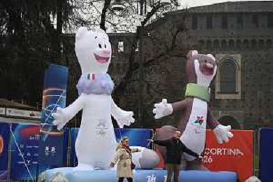 TVPG Olimpiadi invernali Milano Cortina 2026, nella foto villaggio olimpico Castello Sforzesco con mascotte Tina e Milo, 6/22-02-2026 Milano ©TVPG Pasquale Golia - AGENZIA ALDO LIVERANI SAS