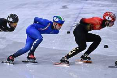 Olimpiadi Milano Cortina 2026 nella foto il contatto tra Pietro Sighel (ITA) e l'atleta polacco che ha portato alla squalifica dell'italiano Assago (MI) 12-02-2026 Milano Ice Skating Arena Short Track - 1.000 metri maschili foto Roberto Garavaglia/Agenzia Aldo Liverani sas