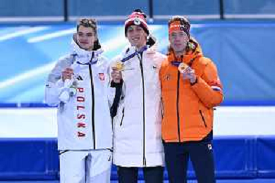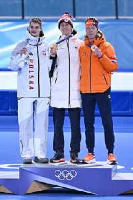 Olimpiadi Milano Cortina 2026 nella foto il podio, da SX Vladimir Semirunniy (POL), Metodey Jilek (CZE) e Jorrit Bergsma (NED) Milano RhoFiera 13-02-2026 Milano Speed Skating Stadium Pattinaggio di velocità - 10.000m maschili foto Roberto Garavaglia/Agenzia Aldo Liverani sas
