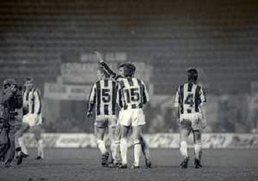 NEG- 21-10-1987- MILANO 2 TURNO DI ANDATA DI COPPA UEFA INTER-TURUN PALLOSEURA 0-1 NELLA FOTO ESULTANZA GIOCATORI TURUN A FINE GARA AG ALDO LIVERANI SAS