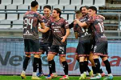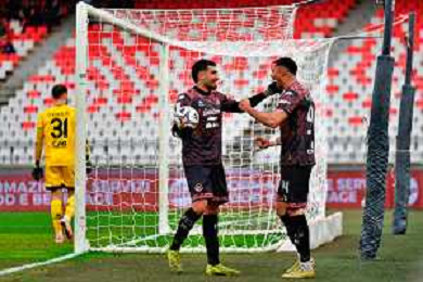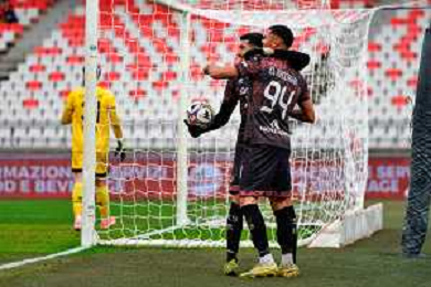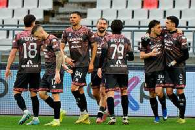 TVEM February 15, 2026 Bari, Italy - SSC Bari vs FC Sudtirol - Italian Soccer Serie B 2025/2026 - San Nicola Stadium. In the pic: MERKAJ Silvio of Sudtirol celebrates after scoring a goal with teammates foto emmanuele mastrodonato-ag aldo liverani sas
