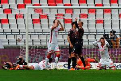 TVEM February 15, 2026 Bari, Italy - SSC Bari vs FC Sudtirol - Italian Soccer Serie B 2025/2026 - San Nicola Stadium. In the pic: Moussa Mane of SSC Bari disappointed after scoring an own goal ©TVEM Emmanuele Mastrodonato - AGENZIA ALDO LIVERANI SAS