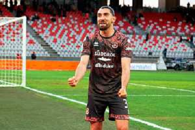 TVEM February 15, 2026 Bari, Italy - SSC Bari vs FC Sudtirol - Italian Soccer Serie B 2025/2026 - San Nicola Stadium. In the pic: MERKAJ Silvio of Sudtirol celebrates the victory foto emmanuele mastrodonato-ag aldo liverani sas