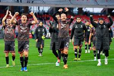TVEM February 15, 2026 Bari, Italy - SSC Bari vs FC Sudtirol - Italian Soccer Serie B 2025/2026 - San Nicola Stadium. In the pic: players of Sudtirol celebrates the victory ©TVEM Emmanuele Mastrodonato- AGENZIA ALDO LIVERANI SAS
