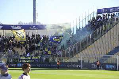 Hellas Veorna fans show their support during Parma Calcio vs Hellas Verona, 25° Serie A Enilive 2025-26 game at Ennio Tardini stadium in Parma (PR), Italy, on February 15, 2026. (Photo by Davide Casentini)- AGENZIA ALDO LIVERANI SAS