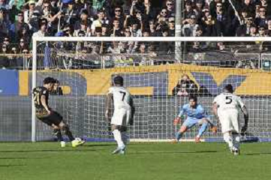 Abdou Harroui of Hellas Verona FC scores a goal on penalty during Parma Calcio vs Hellas Verona, 25° Serie A Enilive 2025-26 game at Ennio Tardini stadium in Parma (PR), Italy, on February 15, 2026. (Photo by Davide Casentini)- AGENZIA ALDO LIVERANI SAS