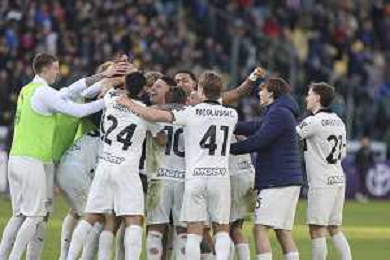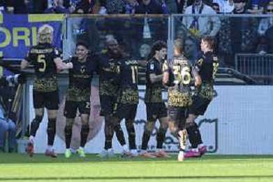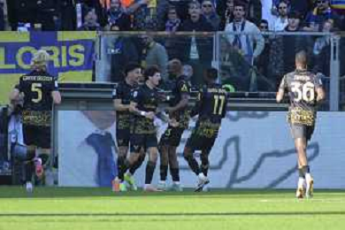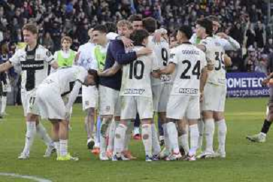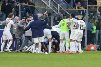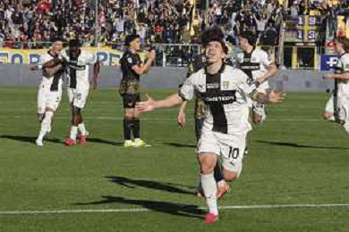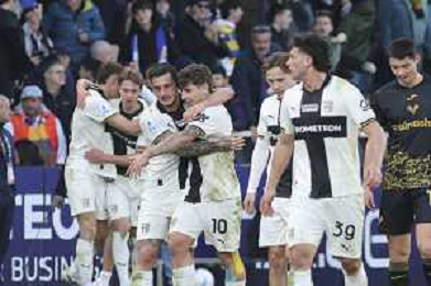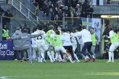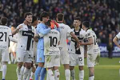 Parma players celebrate the victory at the end of Parma Calcio vs Hellas Verona, 25° Serie A Enilive 2025-26 game at Ennio Tardini stadium in Parma (PR), Italy, on February 15, 2026. (Photo by Davide Casentini)- AGENZIA ALDO LIVERANI SAS