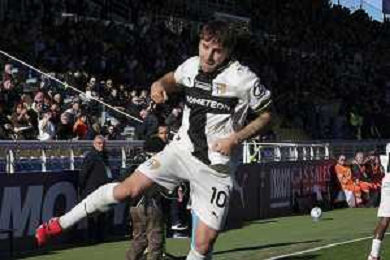 Adrian Bernabe’ of Parma AC9 celebrates after scoring during Parma Calcio vs Hellas Verona, 25° Serie A Enilive 2025-26 game at Ennio Tardini stadium in Parma (PR), Italy, on February 15, 2026. (Photo by Davide Casentini)- AGENZIA ALDO LIVERANI SAS