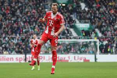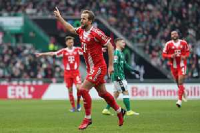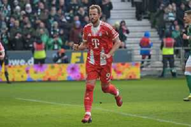 1. Bundesliga - SV Werder Bremen - FC Bayern München am 14.02.2026 im Weserstadion in Bremen Jubel, Torjubel, Torschuetze, Torschütze Harry Kane (Muenchen 9) jubelt nach seinem Tor zum 0 zu 3 Foto: osnapix / Marcus Hirnschal DFB regulations prohibit any use of photographs as image sequences and/or quasi-video / action press AG KARMAPRESS-AG ALDO LIVERANI SAS