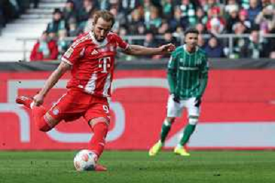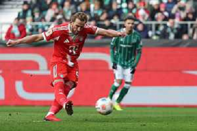 1. Bundesliga - SV Werder Bremen - FC Bayern München am 14.02.2026 im Weserstadion in Bremen Harry Kane (Muenchen 9) erzielt per Elfmeter das Tor zum 0 zu 1 Foto: osnapix / Marcus Hirnschal DFB regulations prohibit any use of photographs as image sequences and/or quasi-video / action press AG KARMAPRESS-AG ALDO LIVERANI SAS