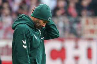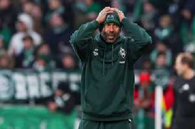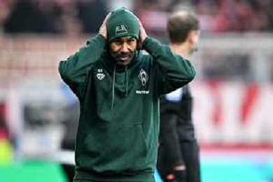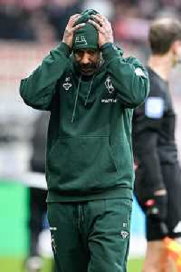 1. Bundesliga: SV Werder Bremen - FC Bayern München am 14.02.2026 im Weserstadion in Bremen Trainer Daniel Thioune (Bremen) unzufrieden, enttäuscht, enttaeuscht, niedergeschlagen. Foto: osnapix / Michael Titgemeyer DFL regulations prohibit any use of photographs as image sequences and/or quasi-video. / action press AG KARMAPRESS-AG ALDO LIVERANI SAS