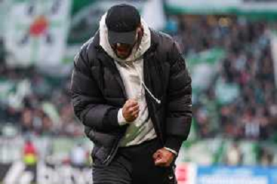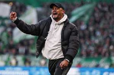 1. Bundesliga: SV Werder Bremen - FC Bayern München am 14.02.2026 im Weserstadion in Bremen Trainer Vincent Kompany (Bayern Muenchen) macht den Daumen hoch. Foto: osnapix / Michael Titgemeyer DFL regulations prohibit any use of photographs as image sequences and/or quasi-video. / action press AG KARMAPRESS-AG ALDO LIVERANI SAS