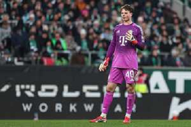 1. Bundesliga - SV Werder Bremen - FC Bayern München am 14.02.2026 im Weserstadion in Bremen Torwart Jonas Urbig (Muenchen 40) Foto: osnapix / Marcus Hirnschal DFB regulations prohibit any use of photographs as image sequences and/or quasi-video / action press AG KARMAPRESS-AG ALDO LIVERANI SAS