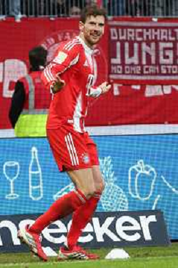1. Bundesliga - SV Werder Bremen - FC Bayern München am 14.02.2026 im Weserstadion in Bremen Jubel, Torjubel, Torschuetze, Torschütze Leon Goretzka (Muenchen 8) jubelt nach seinem Tor zum 0 zu 3 Foto: osnapix / Marcus Hirnschal DFB regulations prohibit any use of photographs as image sequences and/or quasi-video / action press AG KARMAPRESS-AG ALDO LIVERANI SAS