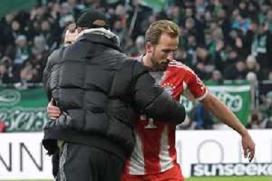 Trainer Vincent Kompany (FC Bayern Muenchen) dankt Harry Kane (FC Bayern Muenchen #9), SV Werder Bremen - FC Bayern Muenchen, Fussball, Bundesliga, DFL, 14.02.2026 DFB regulations prohibit any use of photographs as image sequences and/or quasi-video / action press AG KARMAPRESS-AG ALDO LIVERANI SAS