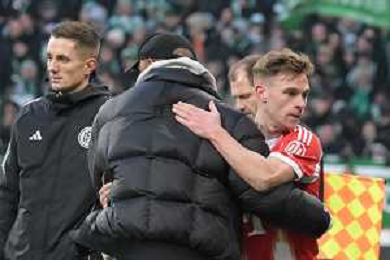 Trainer Vincent Kompany (FC Bayern Muenchen) dankt Joshua Kimmich (FC Bayern Muenchen #6), SV Werder Bremen - FC Bayern Muenchen, Fussball, Bundesliga, DFL, 14.02.2026 DFB regulations prohibit any use of photographs as image sequences and/or quasi-video / action press AG KARMAPRESS-AG ALDO LIVERANI SAS