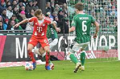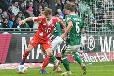 Jubeltanz von Leon Goretzka (FC Bayern Muenchen #8) nach seinem 0:3, SV Werder Bremen - FC Bayern Muenchen, Fussball, Bundesliga, DFL, 14.02.2026 DFB regulations prohibit any use of photographs as image sequences and/or quasi-video / action press AG KARMAPRESS-AG ALDO LIVERANI SAS