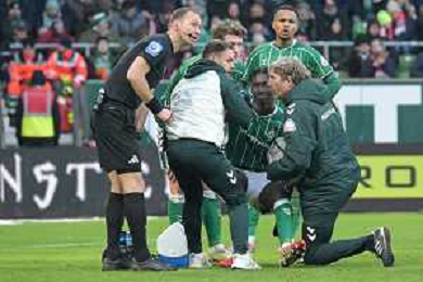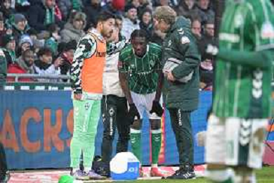 Karim Coulibaly (SV Werder Bremen #31) muss verletzt vom Feld, SV Werder Bremen - FC Bayern Muenchen, Fussball, Bundesliga, DFL, 14.02.2026 DFB regulations prohibit any use of photographs as image sequences and/or quasi-video / action press AG KARMAPRESS-AG ALDO LIVERANI SAS