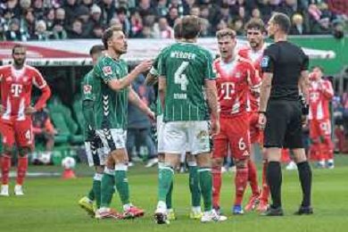 Diskussion mit Schiedsrichter Bastian Dankert, SV Werder Bremen - FC Bayern Muenchen, Fussball, Bundesliga, DFL, 14.02.2026 DFB regulations prohibit any use of photographs as image sequences and/or quasi-video / action press AG KARMAPRESS-AG ALDO LIVERANI SAS