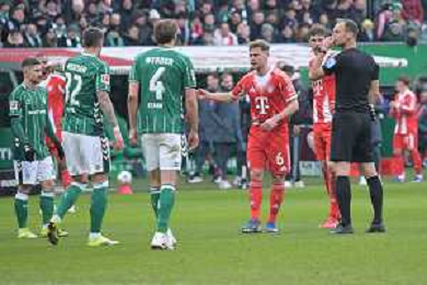 Dieskussion von Joshua Kimmich (FC Bayern Muenchen #6) mit Schiedsrichter Bastian Dankert, SV Werder Bremen - FC Bayern Muenchen, Fussball, Bundesliga, DFL, 14.02.2026 DFB regulations prohibit any use of photographs as image sequences and/or quasi-video / action press AG KARMAPRESS-AG ALDO LIVERANI SAS