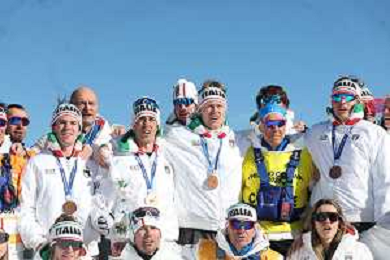 Federico PELLEGRINO, ITA, Martino CAROLLO, ITA, Elia BARP, ITA, Davide GRAZ, ITA, winner photo, Men's 4x7.5km Relay Classic/Free at Cross-Country Olympic Winter Games 2025-26 in Milano Cortina, Italy, 2026-02-15, Photo Credit: action press / Julia Piatkowska/ Karmapress - AGENZIA ALDO LIVERANI SAS ITALY ONLY EDITORIAL USE ONLY