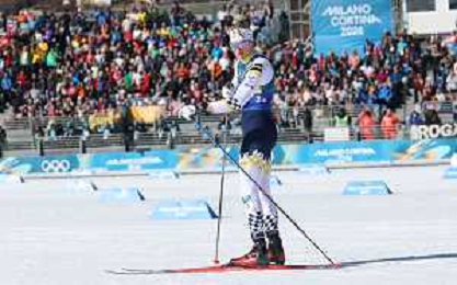 William POROMAA, SWE, bib number 3-3, action photo, Men's 4x7.5km Relay Classic/Free at Cross-Country Olympic Winter Games 2025-26 in Milano Cortina, Italy, 2026-02-15, Photo Credit: action press / Julia Piatkowska AG KARMAPRESS-AG ALDO LIVERANI SAS