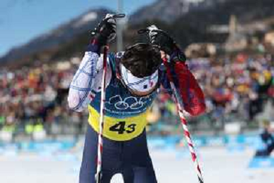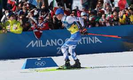 Mathis DESLOGES, FRA, bib number 4-3, action photo, Men's 4x7.5km Relay Classic/Free at Cross-Country Olympic Winter Games 2025-26 in Milano Cortina, Italy, 2026-02-15, Photo Credit: action press / Julia Piatkowska AG KARMAPRESS-AG ALDO LIVERANI SAS