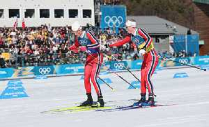 Johannes Hoesflot KLAEBO, NOR, Einar HEDEGART, NOR, bib number 1-3, action photo, Men's 4x7.5km Relay Classic/Free at Cross-Country Olympic Winter Games 2025-26 in Milano Cortina, Italy, 2026-02-15, Photo Credit: action press / Julia Piatkowska AG KARMAPRESS-AG ALDO LIVERANI SAS