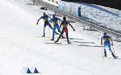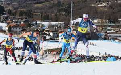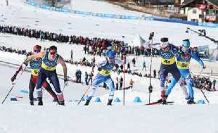 Mathis DESLOGES, FRA, Martino CAROLLO, ITA, Remi DROLET, CAN, Arsi RUUSKANEN, FIN, action photo, Men's 4x7.5km Relay Classic/Free at Cross-Country Olympic Winter Games 2025-26 in Milano Cortina, Italy, 2026-02-15, Photo Credit: action press / Julia Piatkowska AG KARMAPRESS-AG ALDO LIVERANI SAS